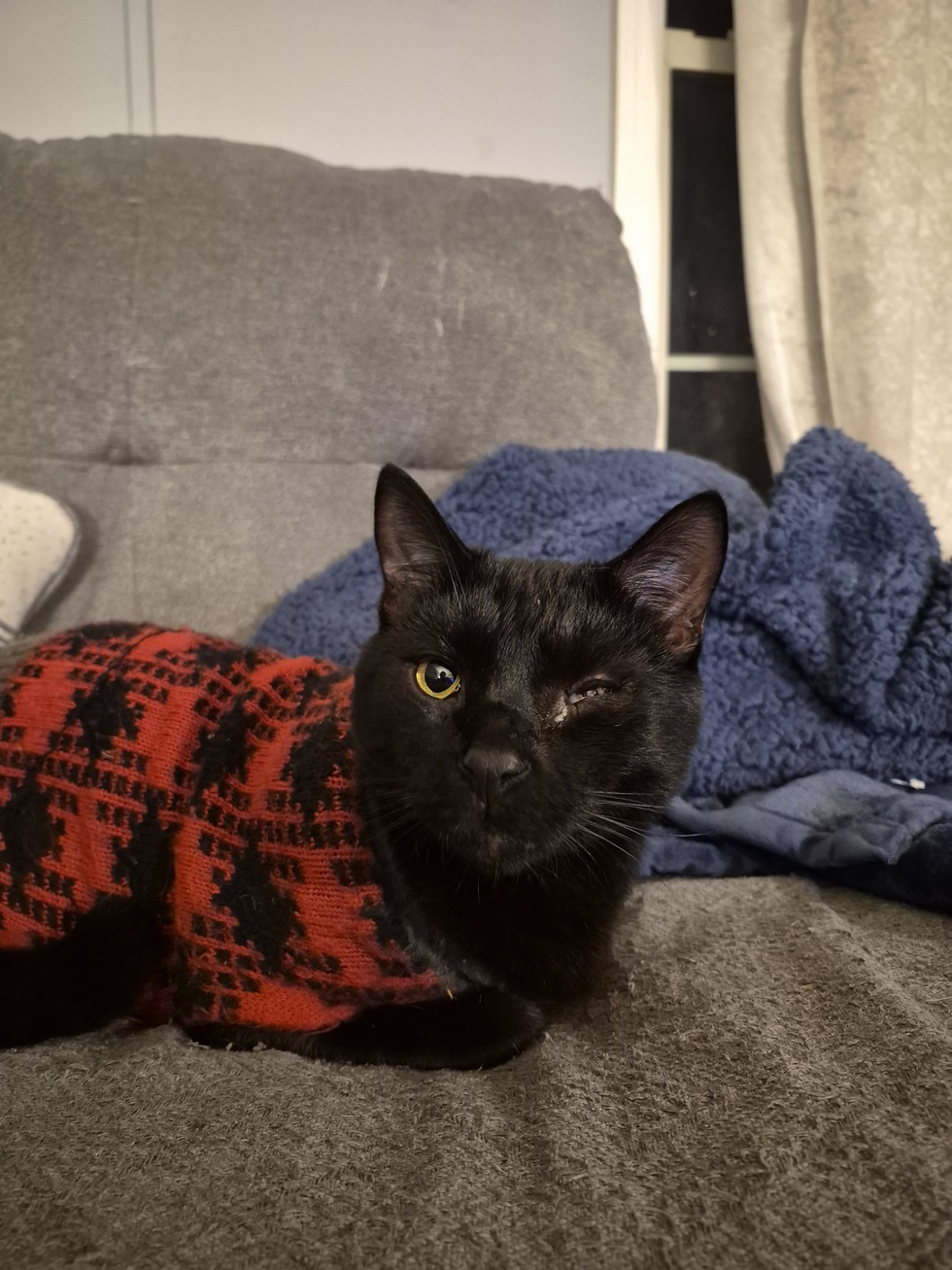 Louie was found under the porch one day as a small little kitten and we had no idea where he came from since we have woods all around. We were able to convince him to be ours with a piece of honey ham. He's a big food and treat lover. He's sweet and sour depending on the day. His hobbies are zoomies, tearing up the couch, naps, and watching the birds outside the window. He's been feeling down lately ever since he lost his gold chain but his sweaters will do.