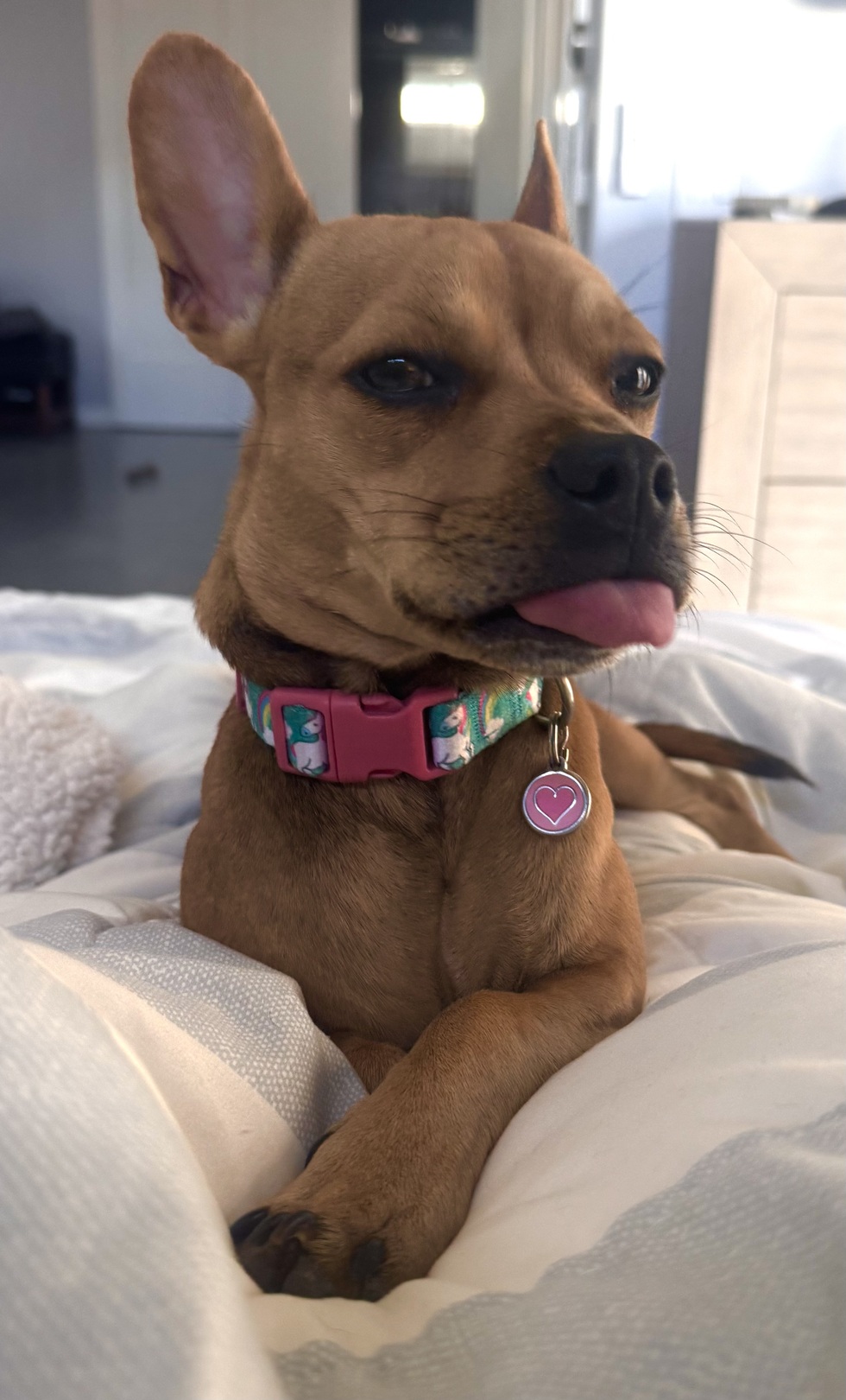 Joy is my Auntie foster angel to every dog and puppy I bring into my home, sharing her love, spunk and playfulness to everyone! And what is amazing is that she is an ICARE alumni member and the reason I got connected to such an amazing rescue!