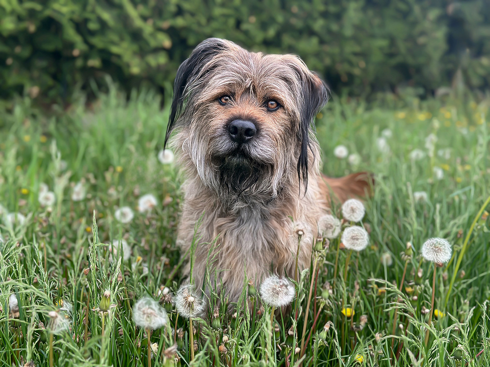 I’m a mixed-breed masterpiece (which basically means I got the best parts of everything) and a goofy guy with a very sharp brain. I may look silly when I’m tunneling upside down in the snow, but don’t be fooled — I know exactly how to work the room, especially if treats are involved.