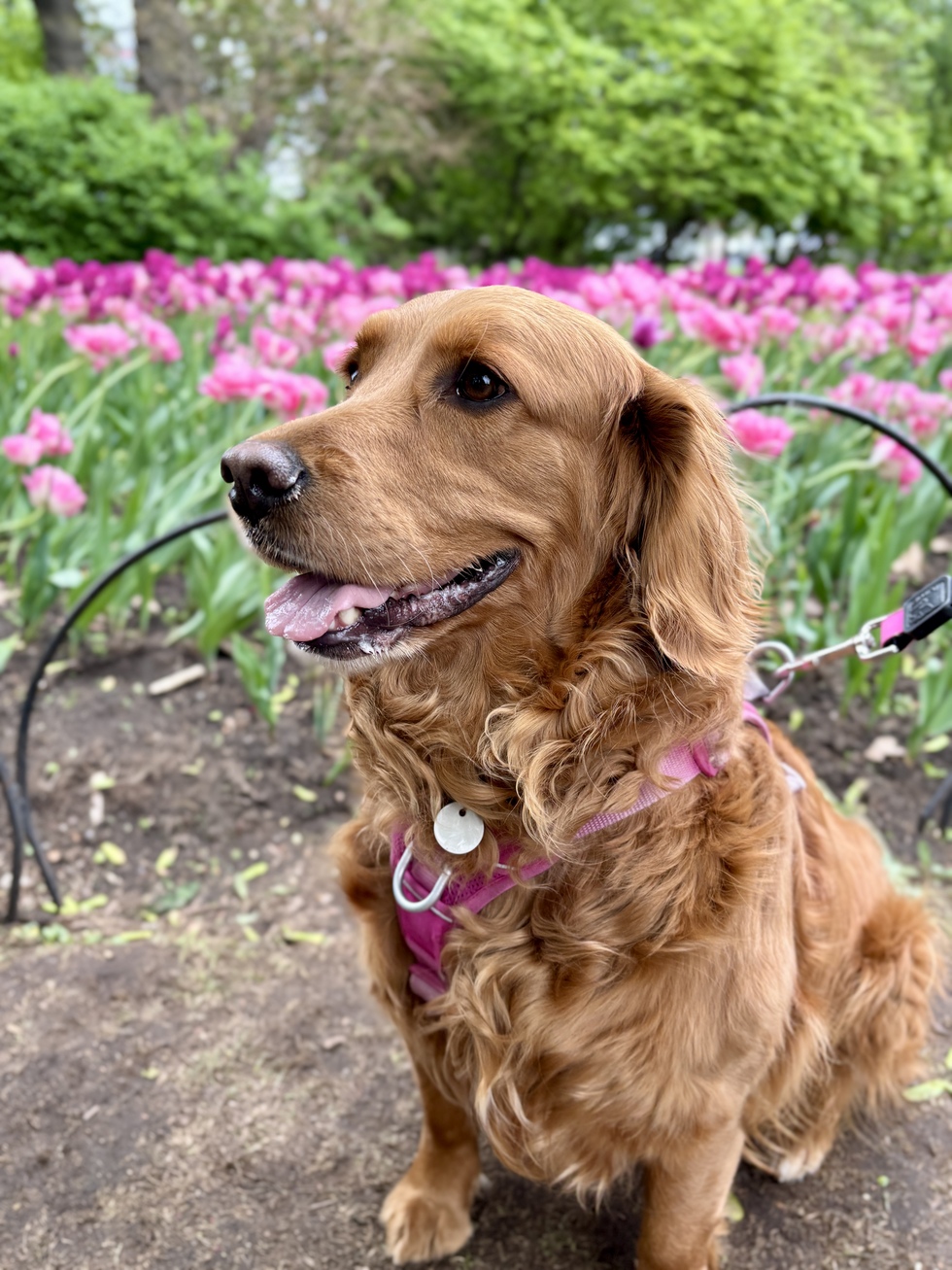 Maple is the definition of a winter-loving pup. She adores snowflakes, chilly mornings, and especially the chance to chase pucks around the neighborhood rinks. But her biggest talent might be her friendliness. Maple is convinced the world is full of friends she just hasn’t met yet, whether they walk on two legs or four. Her gentle, social nature and full body butt wiggles win hearts wherever she goes.