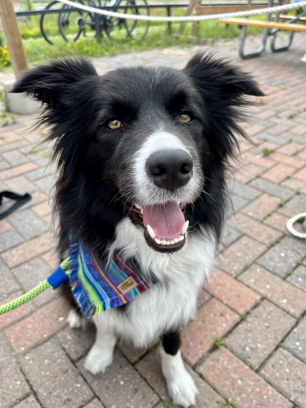 Meet Cedar, a five year old Border Collie with a heart as vast as the great outdoors she loves. While her breed is famous for herding sheep, Cedar has traded the farm life for a much sweeter mission: herding smiles. As a working therapy dog, she possesses an uncanny ability to sense exactly who needs a little extra comfort, offering a gentle nose boop or a soft paw to anyone she meets.