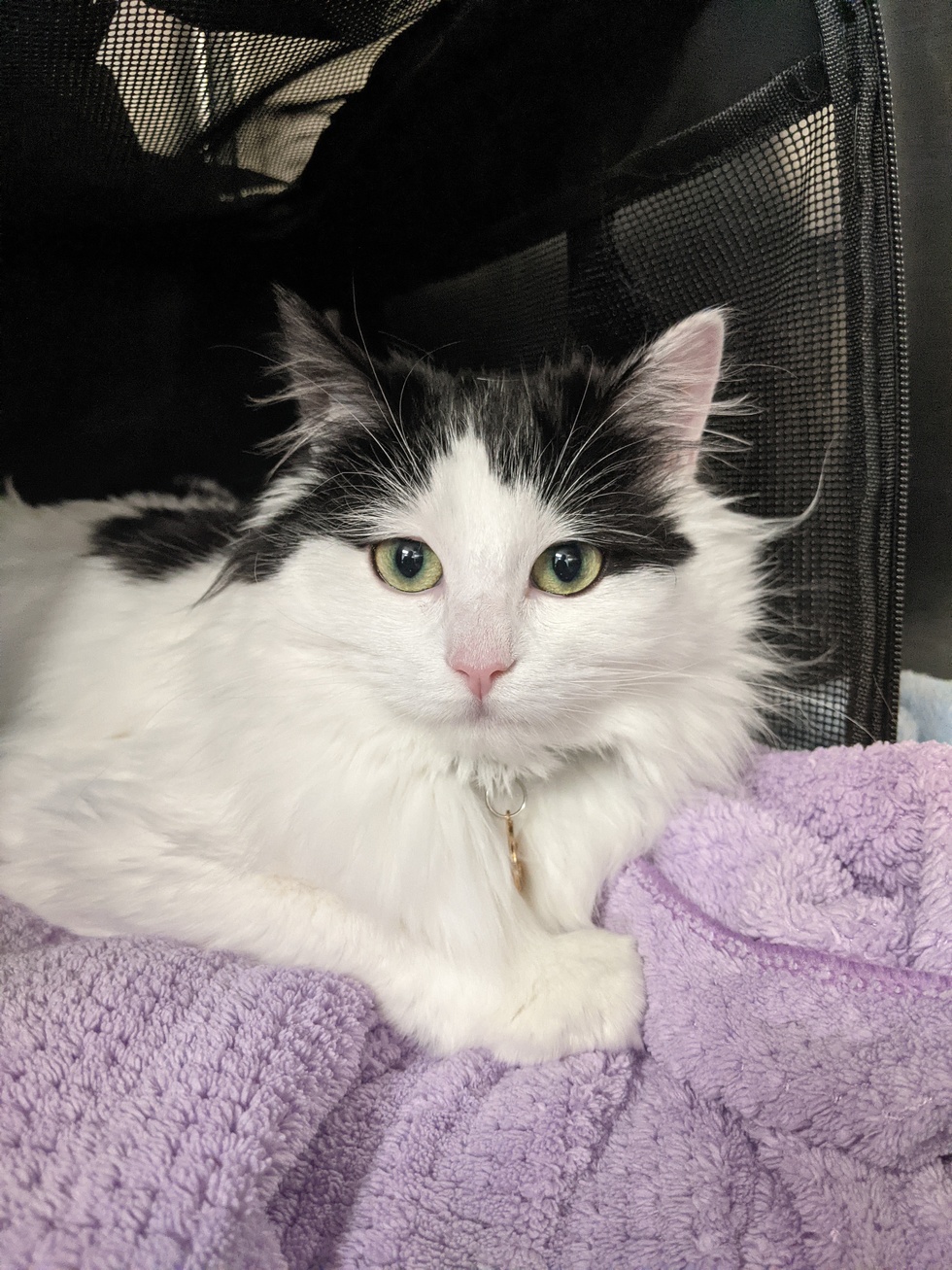 Mathilda was found as a stray at a campsite in Quebec a few weeks ago and was brought into the care of More Than A Feline Cat Rescue, but she has since found her forever home with Forest Valley Animal Hospital's receptionist. She enjoys nothing more than snuggles, sardines, and her warm bedroom.