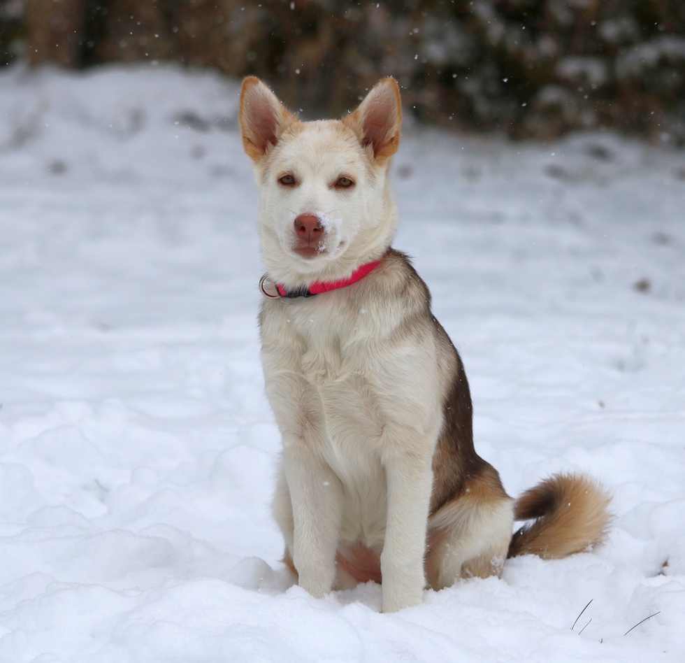 Rescued from the wildfires in Northern Manitoba. Ikuma is the inuit word for "fire". Her name is Kuma.