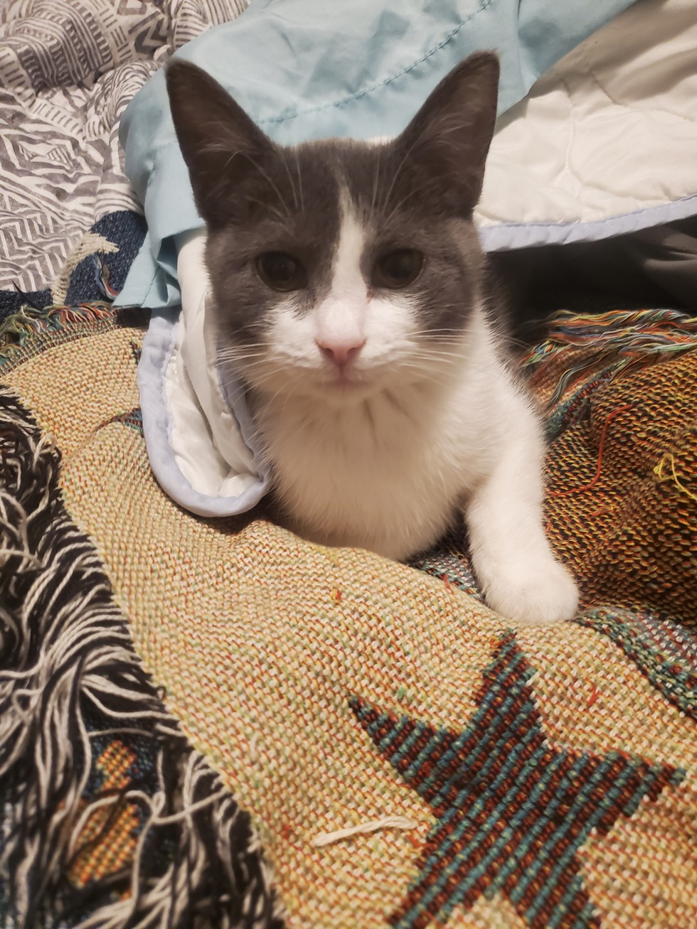 Sofie is a foster fail. She is probably one of the most cuddly and sweet kittens I've ever met. She has helped heal my family's hearts after the loss of our cat Shadow. Sofie is very silly and loves to play.