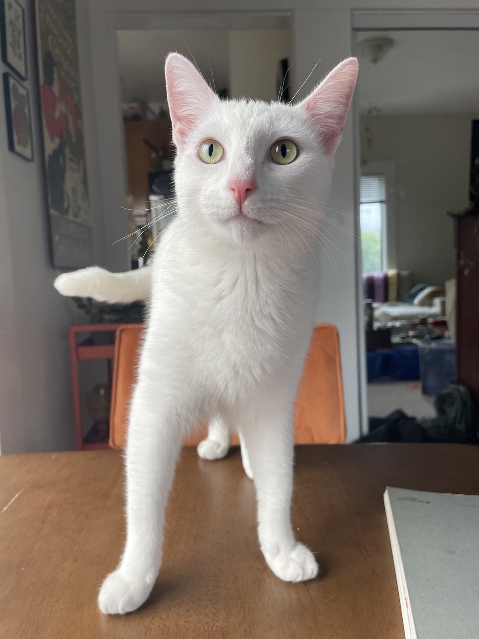 Pink was adopted from Joybound in October 2024. She is named after her pink nose, ears, and toe beans... duh! She is the sweetest girl who can always be heard squeaking for pets!