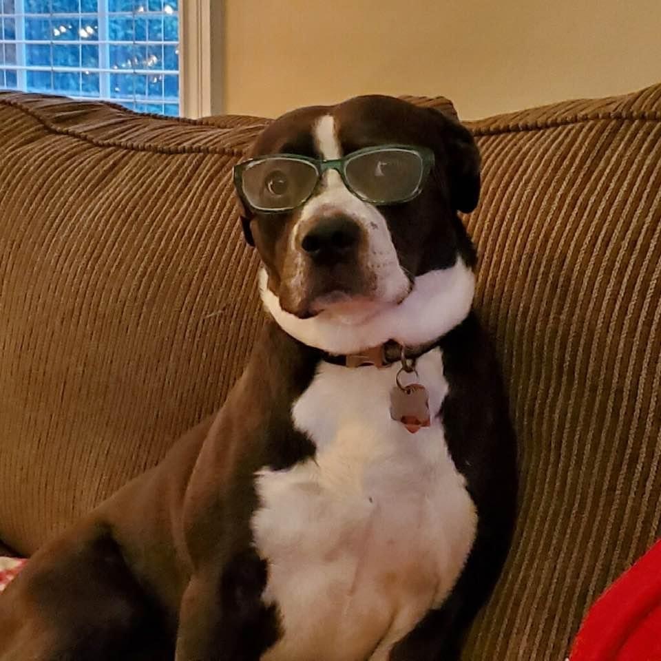 Animal’s StorySasha aka Little Dog was my sweet grand dog. We lost him to cancer about a month ago. He was a stray that wandered into my sons garden about 12 years ago. He was funny, sweet, loving and a gentleman. One day he looked so serious sitting with us on the sofa that my friend added her glasses to his look…..he was such a good sport! This is one of my favorite photos of him. He was a pal to two of our dogs….both from Joybound!