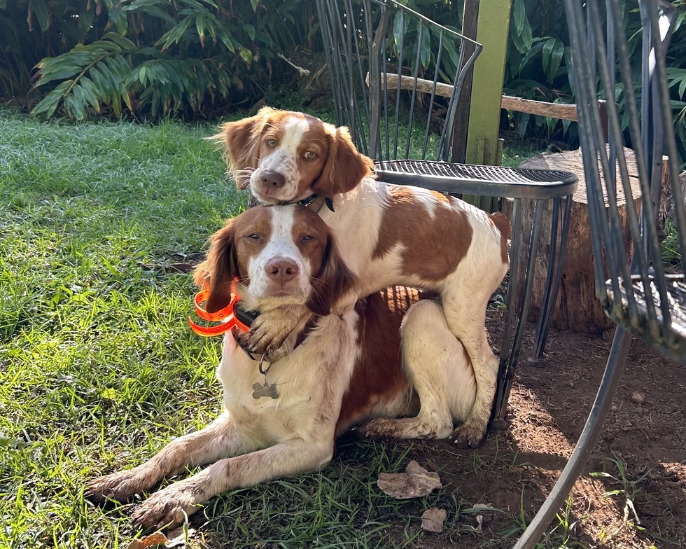 This picture was taken in their favorite place, Kōke’e! They are both happy & hard working bird dogs.