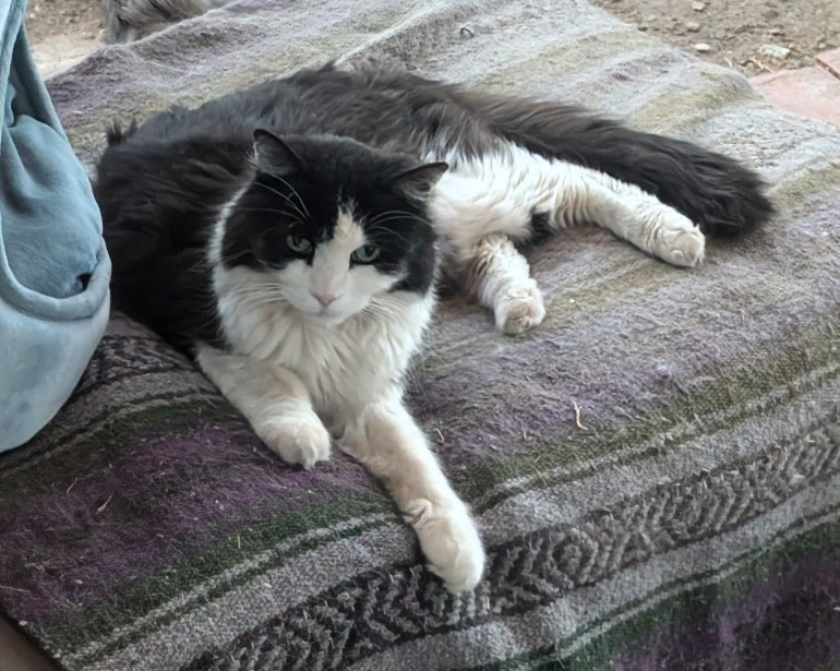 Manson is one of the cool kids who, even after 13 years, prefers we leave him alone. He likes his cat friends and to protect the yard from rival cat gangs.