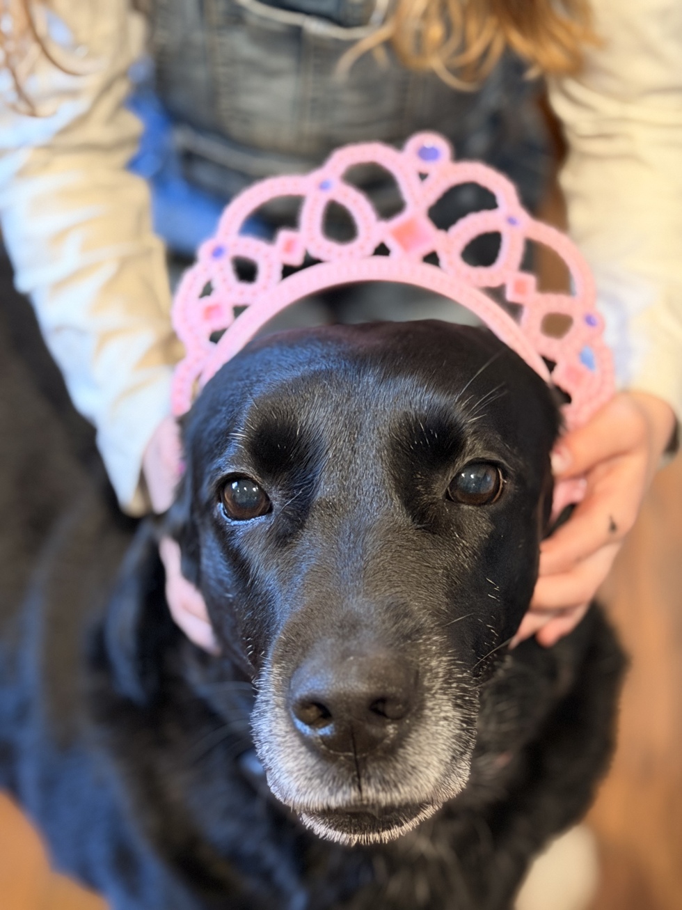 Copper is a real princess . . . lab princess that is! She has had 20 puppies (in 2 litters). We are so proud of her as 14 of her puppies have become service dogs with one recently getting accredited to be paired with a disabled veteran here in Charlotte. She is always ready to go on walks (with or without her headgear).