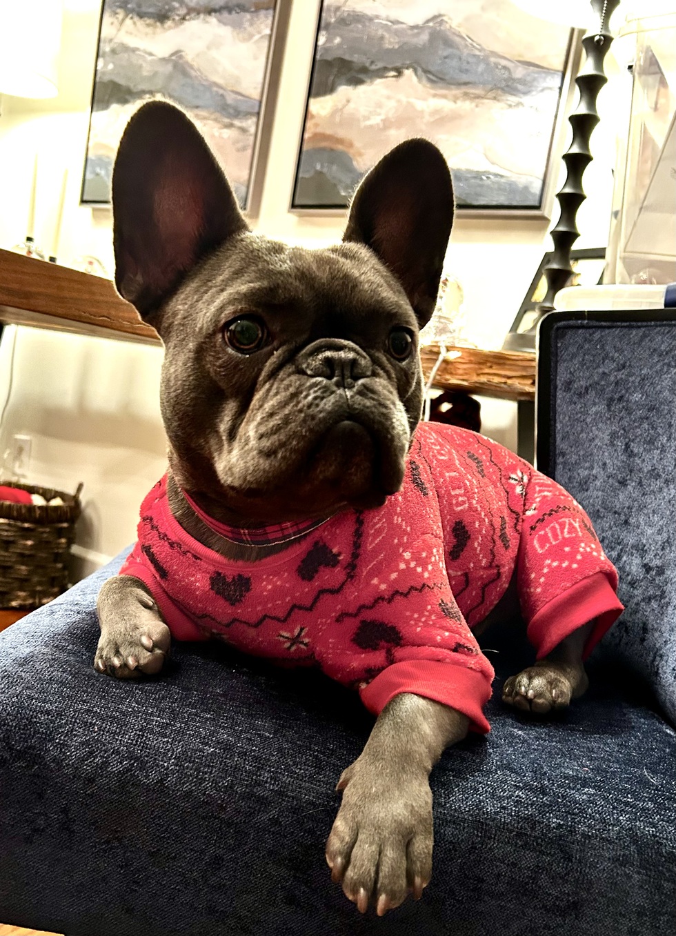Bob was found with a shitzu on the mean streets of Winston Salem. We were lucky enough to rescue him via a friend of ours who has owned 4 frenchies. At first he was timid but when he realized he struck gold with a good family he began to run the house. He is hilarious and only wants to be near you.