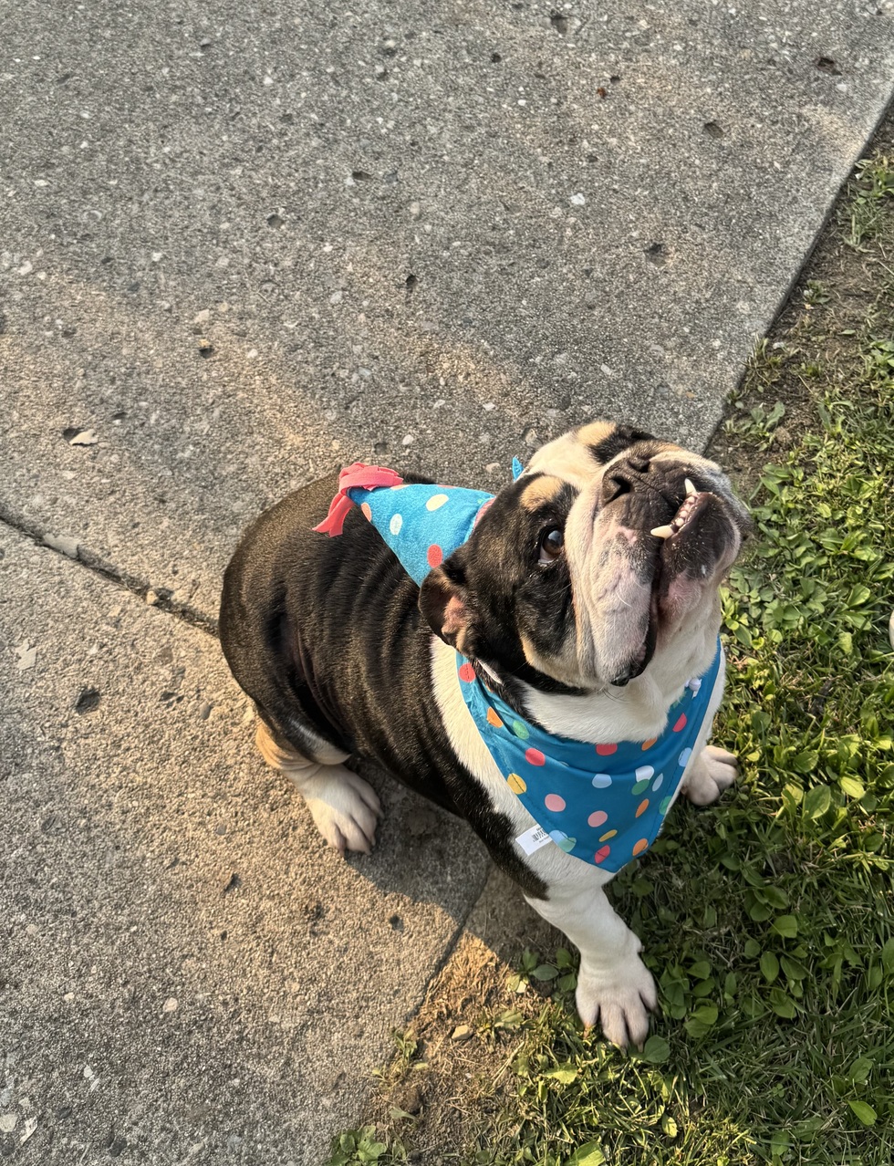 Bentley is a traditional English Bulldog with the confidence of a celebrity and the manners of a guy who absolutely knows he runs the house. He’s got the wrinkles, the attitude, and a personality that fills the whole room. Bentley doesn’t think he’s like a human… he’s pretty sure he actually is one. His hobbies include supervising the household, snoring like a freight train, making mysterious bulldog noises, and dropping the occasional legendary fart. Equal parts charm, chaos, and pure bulldog swagger, Bentley is living proof that Columbus already has a coolest dog… and his name is Bentley. 🐾