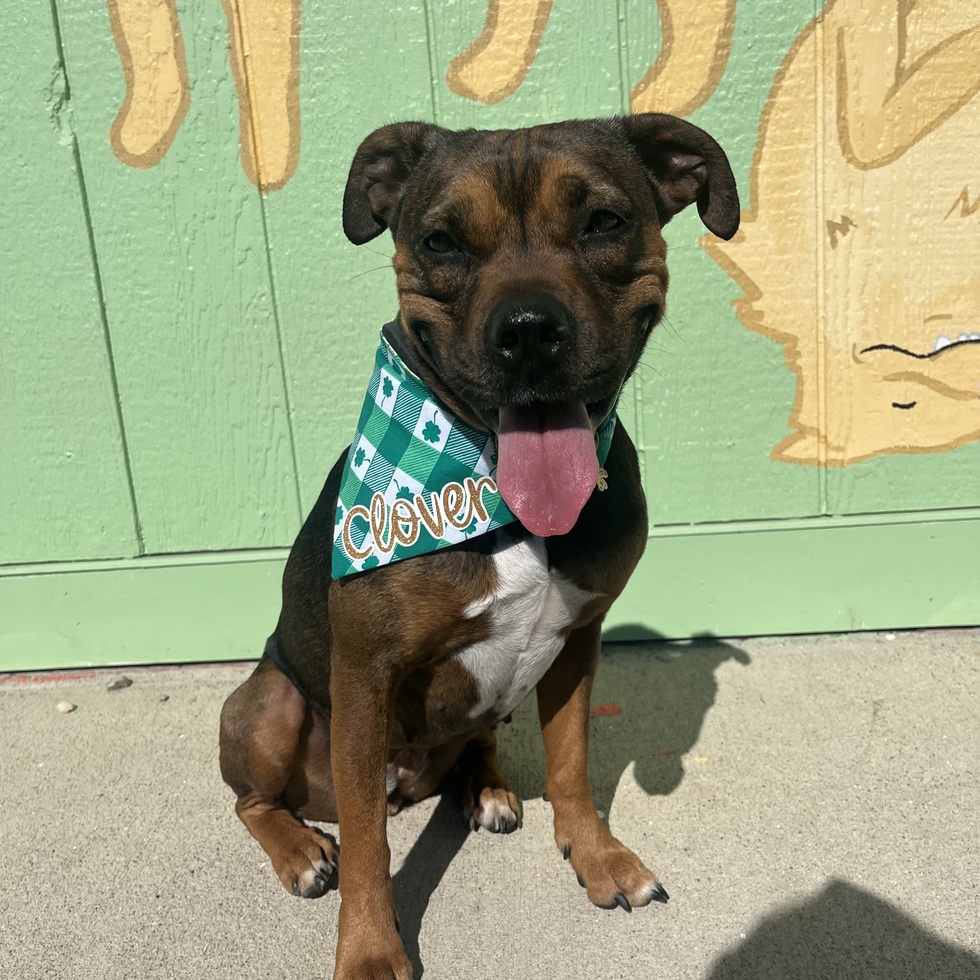 Clover is a spunky four year old Pit/boxer mix rescued from FCDS. I got her when she was a year and a half old as a homeless stray and she is the funniest, cutest, goofiest, and coolest dog you’ll ever meet. She loves to dress in fun outfits with her mom. She can be found at parks around Columbus like The Wag and Bumble’s Backyard. She loves nothing more than a good game of fetch and being around the people she cares about.