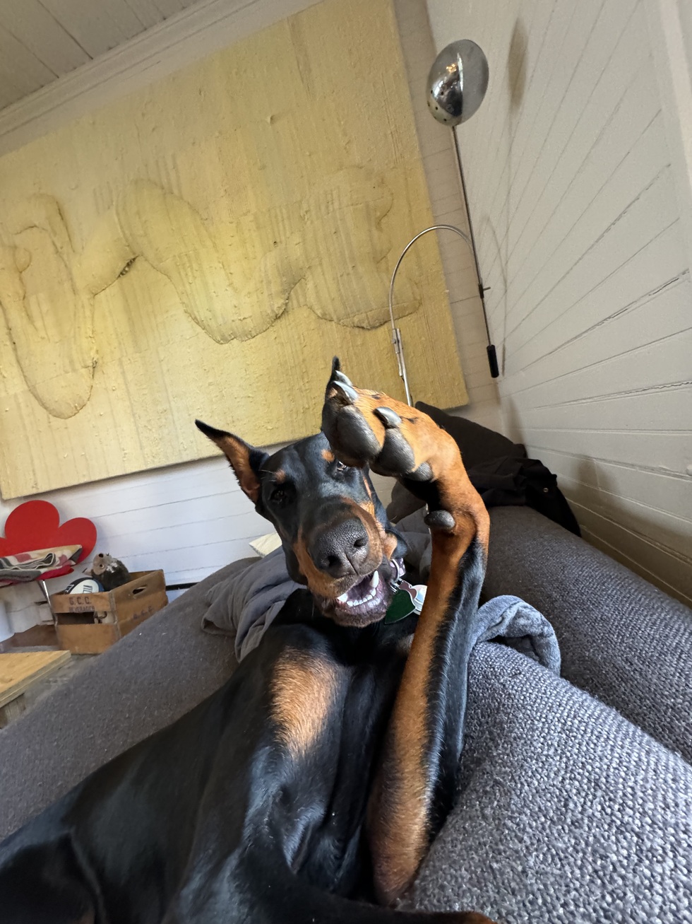 Jinx is a playful and expressive pup who loves adventure or just hanging out with her human companions.