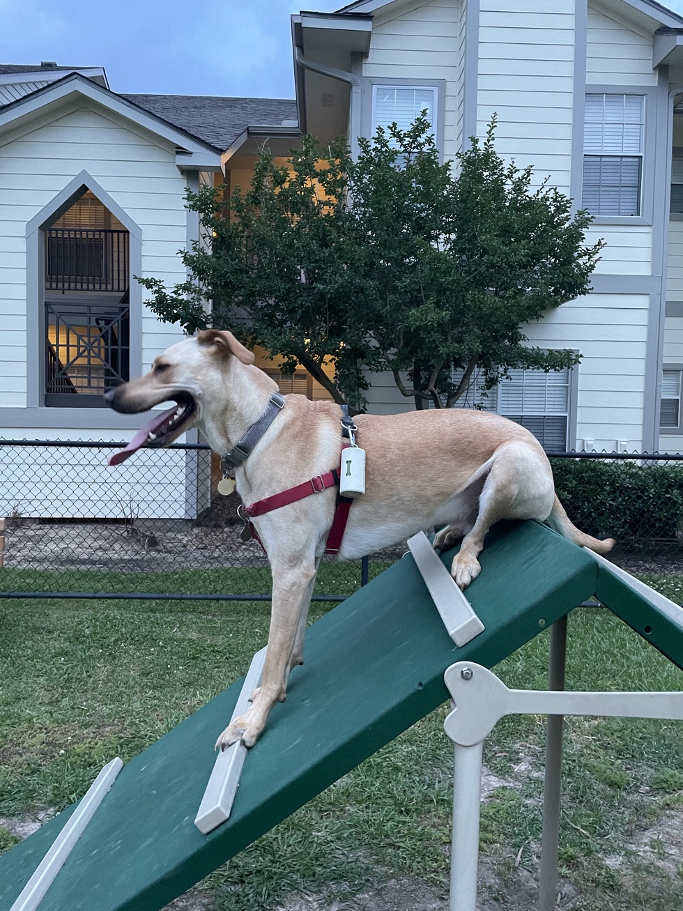 Rugby was born to a stray in Mississippi. We don't know much about his early days. He was then transported by a rescue to Massachusetts where I adopted him on April 9, 2019 and he became my instant best friend. I always joked that he loved people, places, and things because he was the kindest, most fun loving, friendliest, beautiful soul I had ever met. He travelled all up and down the East Coast with me, hiking, boating, eating French fries at restaurants, and making friends with everyone he met along the way. He moved down to Louisiana with me in August, 2020, right before we had to evacuate together for Hurricane Laura, but nothing seemed so bad when Rugby was around. In July of 2021, Rugby was diagnosed with a rare bone marrow disorder that there is no known treatment for. He passed away on August 4, 2021. He was only about two years old. We miss him and love him every single day. We love the work that Lake Charles Pitbull Rescue is doing - saving lost dogs like our little Rugby was once.