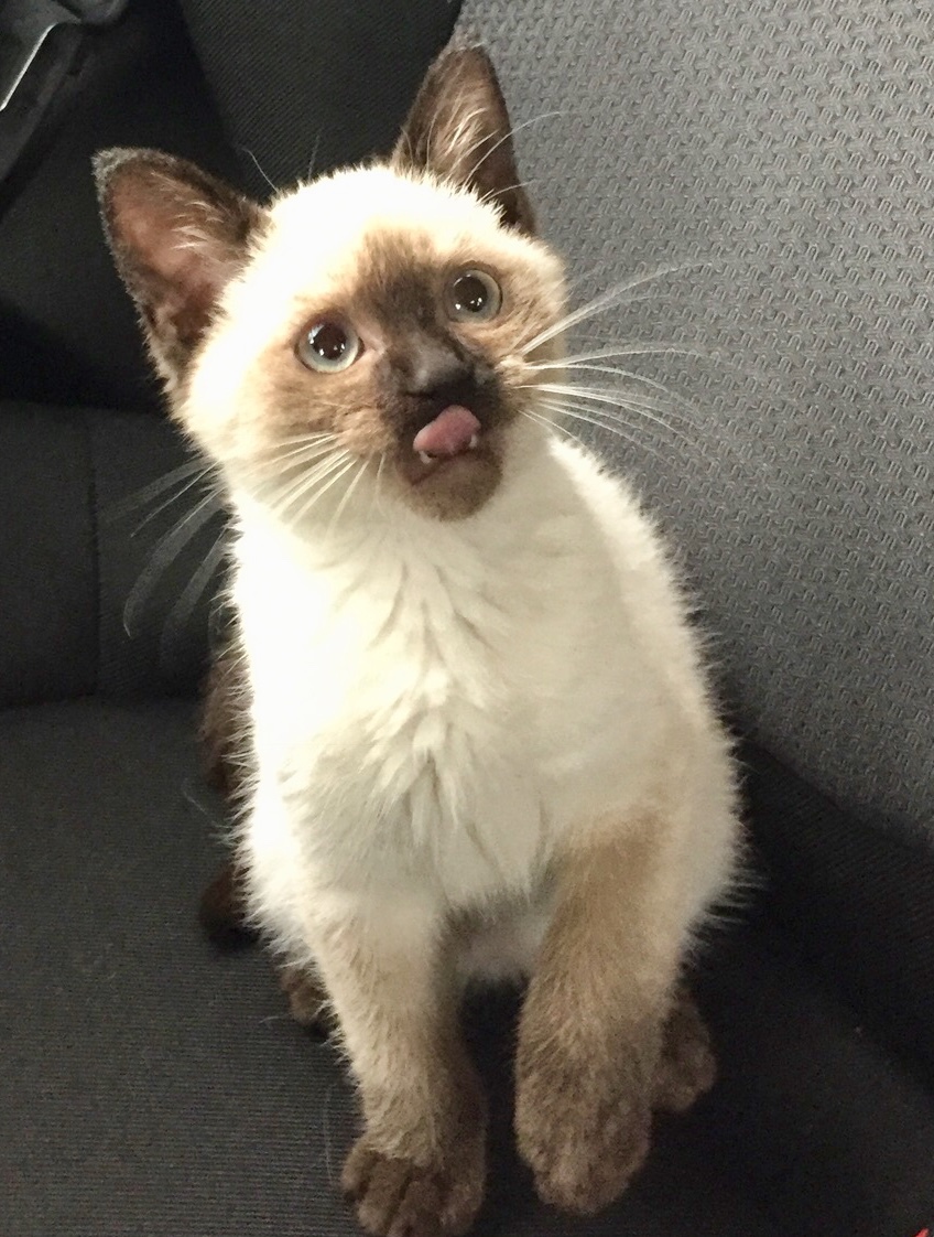 Juneau’s mom was rescued from a hoarder and had her babies at Last Chance Ranch. Juneau was supposed to be adopted by another family but, at the last minute, they changed their mind. We were next on the list and thrilled to get the phone call! I cried on the drive home because I was so happy to finally have our little boy! He has 3 older sisters at home and they are getting along pretty well. Juneau purred the entire fist 3 days that we had him! We are so happy to have him on our family.