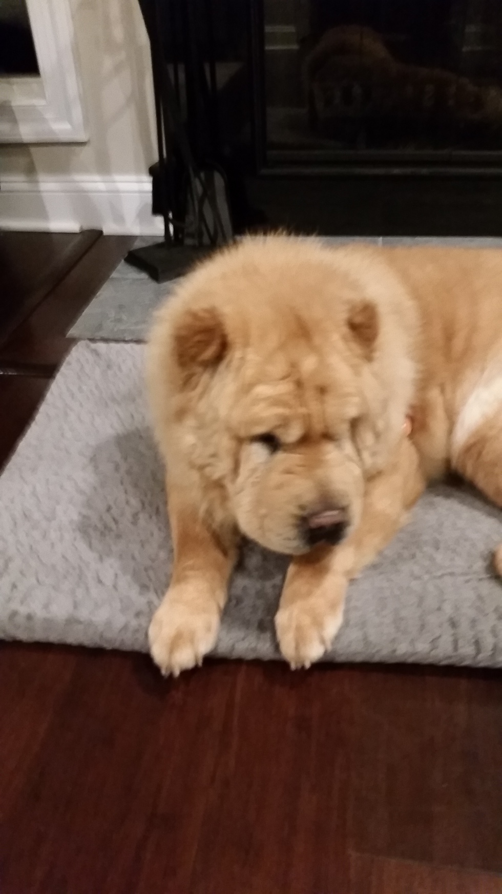Bubba was found wandering in the Maryland countryside and taken to a high-kill shelter where the Last Chance Ranch found him. I swore I'd never get another chow (they are very protective), but one look at that face and I was a goner.