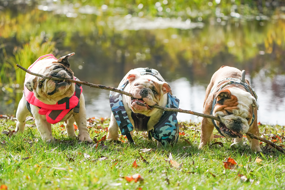 The pup on the left is our Long Island Bulldog Rescue and the middle and right pup are my birth children. Sassy is an absolute delight and a wonderful addition to our home. She has become Milly's best friend and that means old man Duncan can relax. This is the 3 of them on a hike in upstate New York. Milly is a water pup and Sassy will follow so they have their vests on. We get the trio out as much as we can to explore and get exercise. We are beyond greatful for Sassy. She is our love.