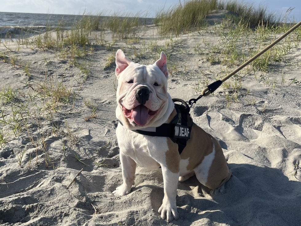 Pancho is a deaf Olde English Bulldog, but don't let his handicap fool you. This rescue pup is living his BEST life! He spends his summer vacations at the beach in Isle of Palms, SC. And with his birthday falling on Cinco de Mayo, his parents threw him an EPIC 4th birthday party in 2025! He is looking forward to all that 2026 will bring!
