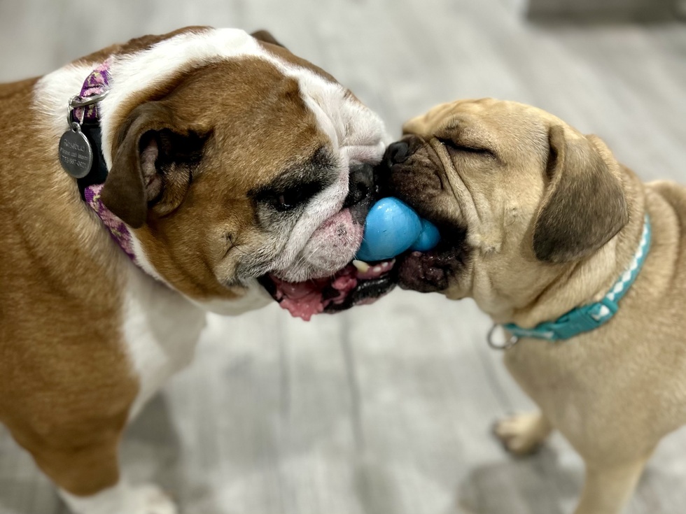 Together, they’re the perfect pair: Rosebud’s calm wisdom balances Norman’s silly spirit. Whether snuggling side by side or begging for treats, they fill every day with love, laughter, and a little slobber. 💕
