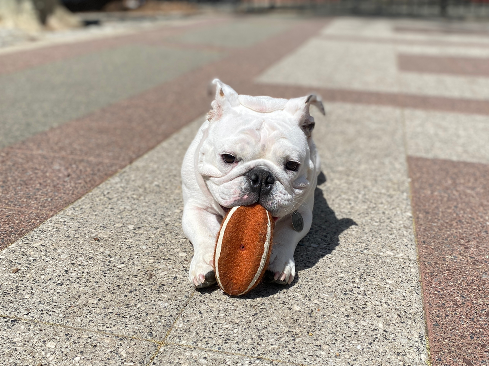 Lucy’s the runt that won the lottery. We adopted her last Thanksgiving, and it’s safe to say it’s been the best year of our lives! At just 30 pounds, this lil' gal with a big story (and an even bigger personality) keeps us laughing daily. Food-obsessed, a little anxious (her biggest fear is large articles of clothing!), and endlessly hilarious, she’s proof that love really does come in the wrinkliest packages.