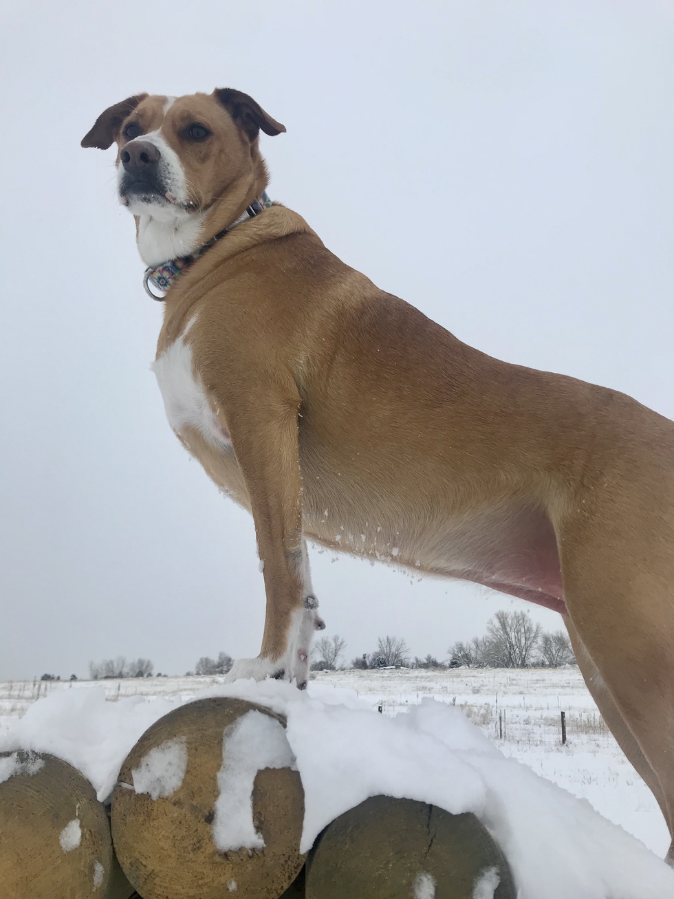 Jolene is such a comedian and so full of personality! She loves people, snuggles, laying by the fireplace, going to Cherry Creek dog park, chasing birds, hiding her dog bones, tearing apart her toys in search of the squeaky insides, chicken and hanging out with all of her furry neighborhood friends... She is very alert and protective of anyone (dog or human) that she befriends (which is most everyone she meets). I am so grateful for her, and I cannot imagine my life without her!