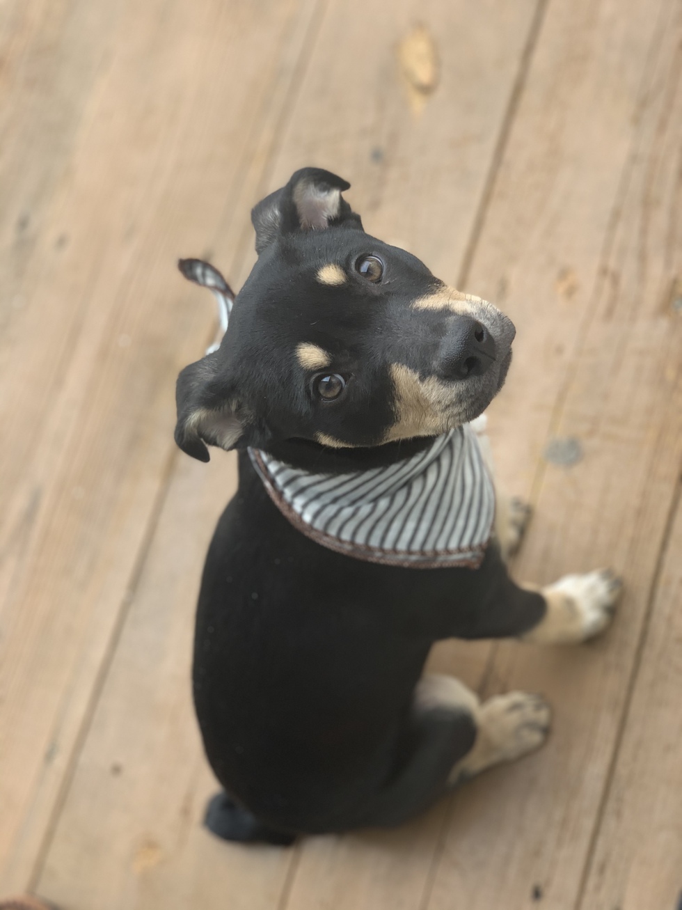 Kona was rescued from New Mexico and came to Colorado where she found her furever home! She is so silly and loves to roll around on her back, be noisy, and paw you for attention. She’s also a quick learner and at 6 months old knows how to sit, lay down, paw, spin, sit pretty, ring a bell, balance treats on her nose, and catch a ball in her mouth! Plus she’s so cute!