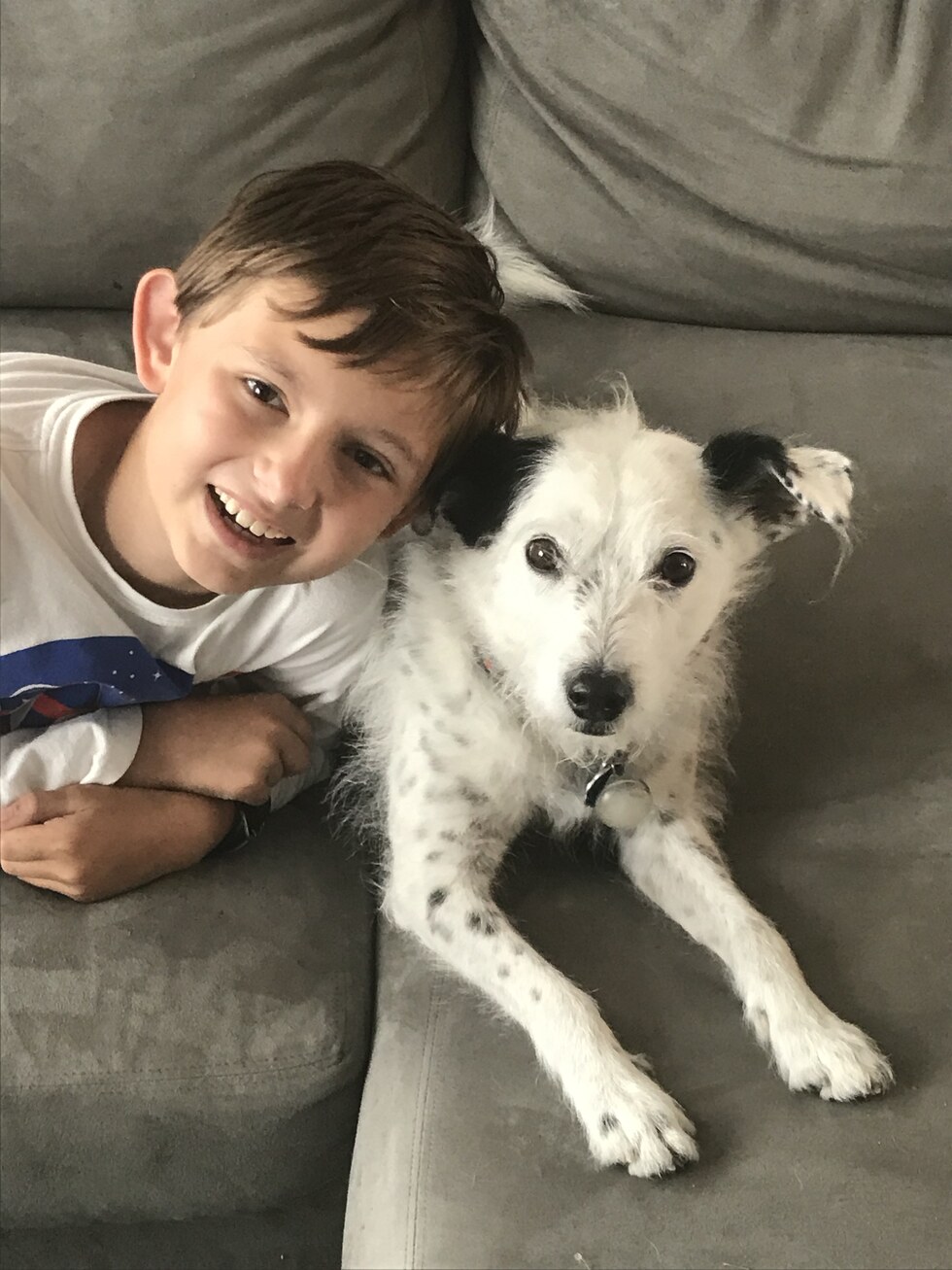 Cal is my son's best friend. When my son was younger he was diagnosed with autism. He would have meltdown and Cal would run up and bark once in his face. The meltdown stopped instantly and my son would hug Cal, a little too hard, but Cal just sat there calmly. Since then my son has taught him to sit, stay, spin, rollover, up pup, stand, fetch, home, and a few I don't know but they do. I taught him to heal.