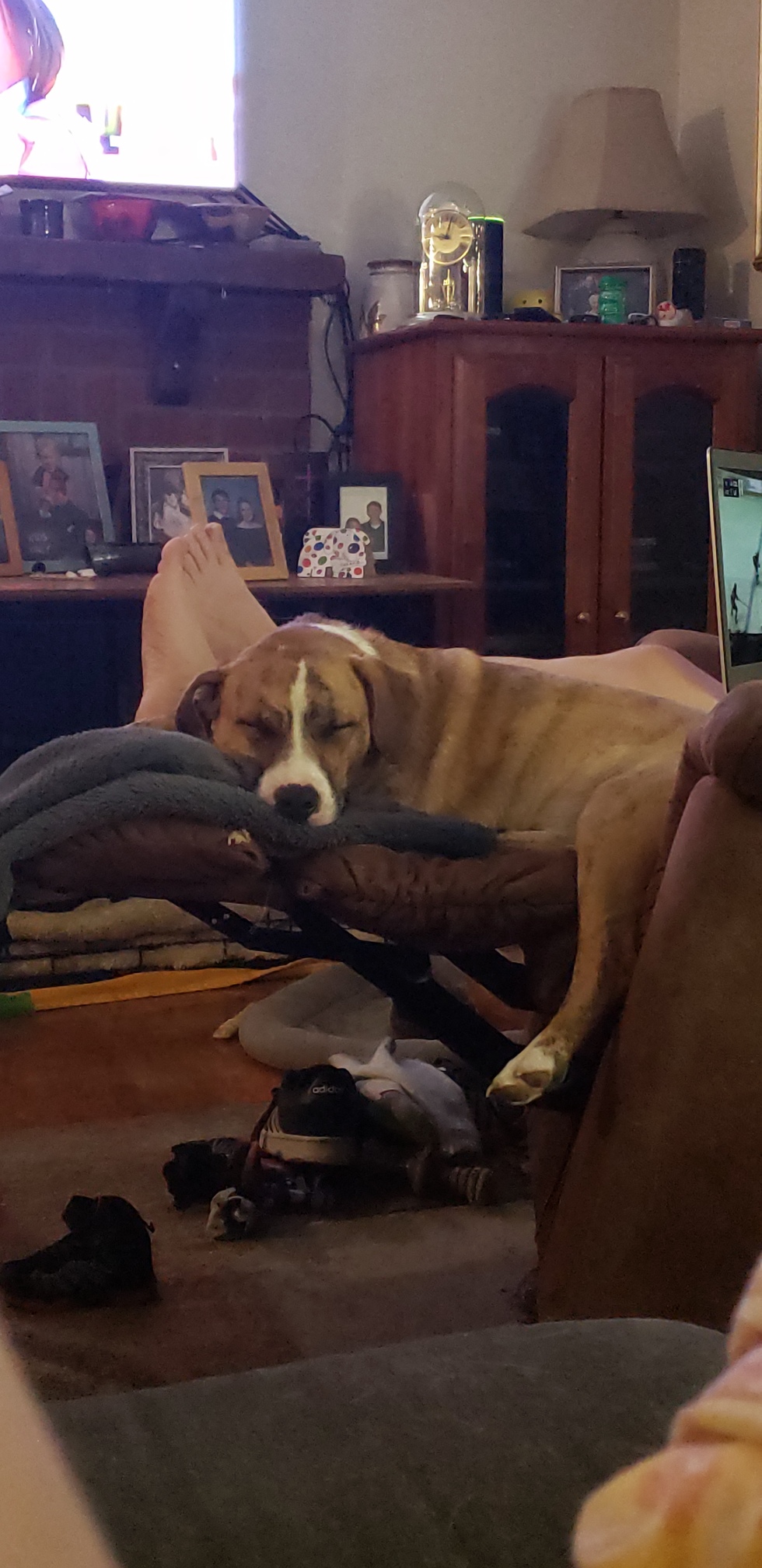 She is super spunky and bounces like Tigger! She LOVES her kids and follows them everywhere, even into their playset and down the slide. She even likes to take showers! She was a great addition to our family after losing our other dog! Her personality is the best mix of all our past and present family dogs!