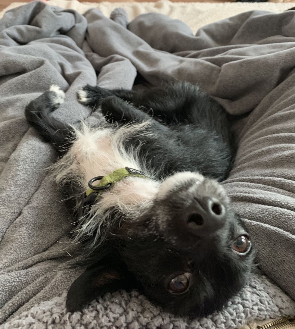 Beau or Beau Beau as I like to call him, is my first little dog experience. He weighs only 9.5 lbs. He has been the best gift ever. He never leaves my side and always cuddles in next to me. I had never bought dog sweaters before, but now he has a whole wardrobe! He loves my big Lifeline rescue dog too...you can often find them snuggling in bed together.