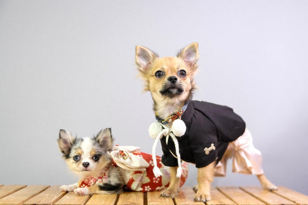 Some things about Yumi (F) and Mochi (M): They are chihuahuas who love traveling Japan, meeting new people and really love playing in snow.
