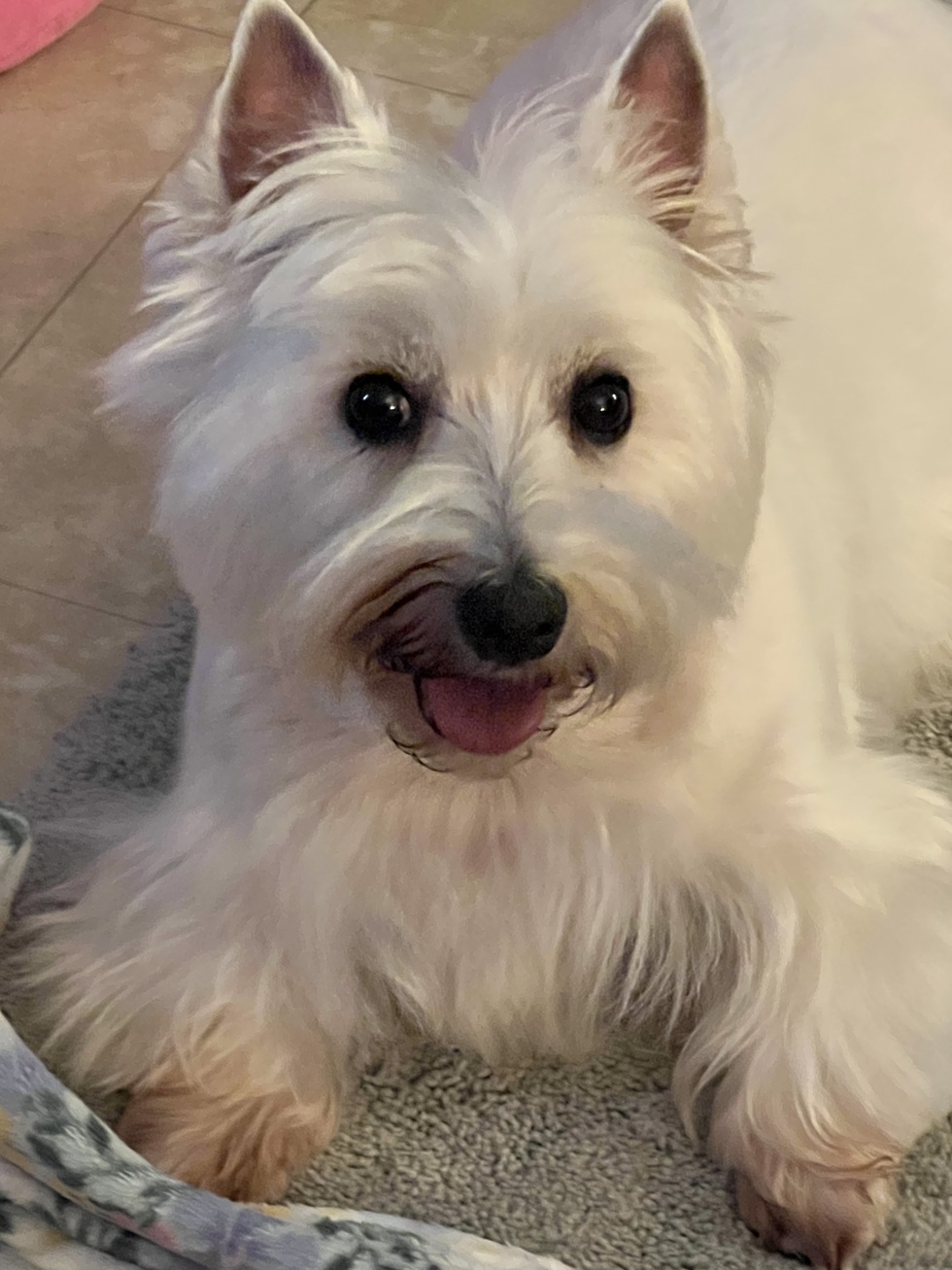 Breyer and her sister Lily were adopted from Little White Dog Rescue. As a bonded pair, these delightful little girls adapted to their “furever” lives and have experienced love and joy since first sight. Breyer has one of the biggest collections of balls in the area (ha, ha) and only loves cuddles more than playing ball. Breyer loves soaking up sunshine and enjoying time outdoors on the deck. She has a keen sense of smell and can always alert us when the deer are in the neighborhood. Breyer is living her best life in our home. Sadly, Lily crossed the Rainbow Bridge in June of 2025.