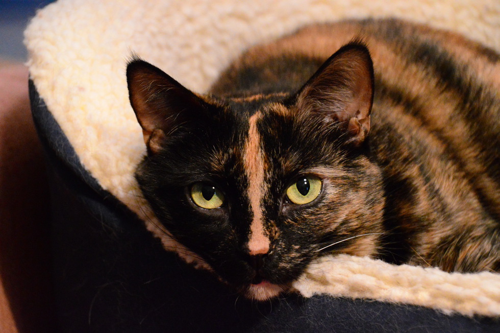 Chloe is a 8 yr old rescue kitty who shares a house with two other rescued cats and a rescued dog. She was a drop off at a local pet store along with her siblings. She loves to play fetch and race around the house (and tolerates the dog giving her kisses).