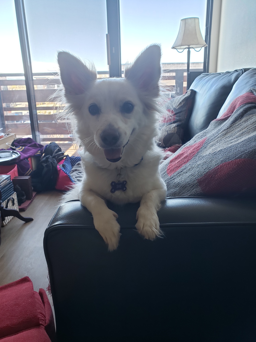 Ellie came to the Longmont Humane Society from Texas. When Ellie was found in her house, her human had died. Her trauma made house training a challenge, but she has come a long way. She's been with us 8 years. At 10 years old, she enjoys going for runs, belly rubs and snuggling on the couch. Who can resist that smile? She's changed from a scared little girl hiding from us to a cute little love bug who won't leave my side!