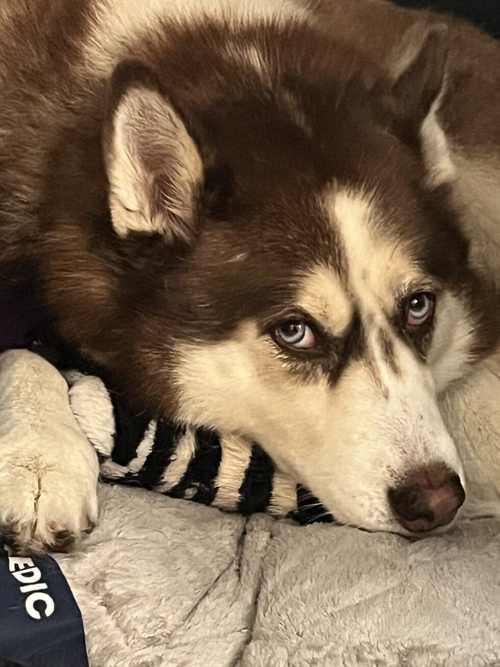 Autumn is an 11 year old female cinnamon-colored Siberian Husky. She came to me as a senior rescue, from a foster family. Her chip said she was 9 yrs old. from Kansas, when I first saw her. I wanted a senior dog to walk with; a small dog, low maintenance. Once I saw her, I was charmed! She is so mellow. She loves to run and walk, loves pets and belly rubs, and is very non-reactive when greeting other dogs and people. She's pretty quiet, too, for a husky. She will quietly lay down under the tables at Longmont Humane and LDDA, when I have meetings. She is a favorite among my neighbors. Autumn got me up and walking again, after some health issues. She's my personal physical therapist.