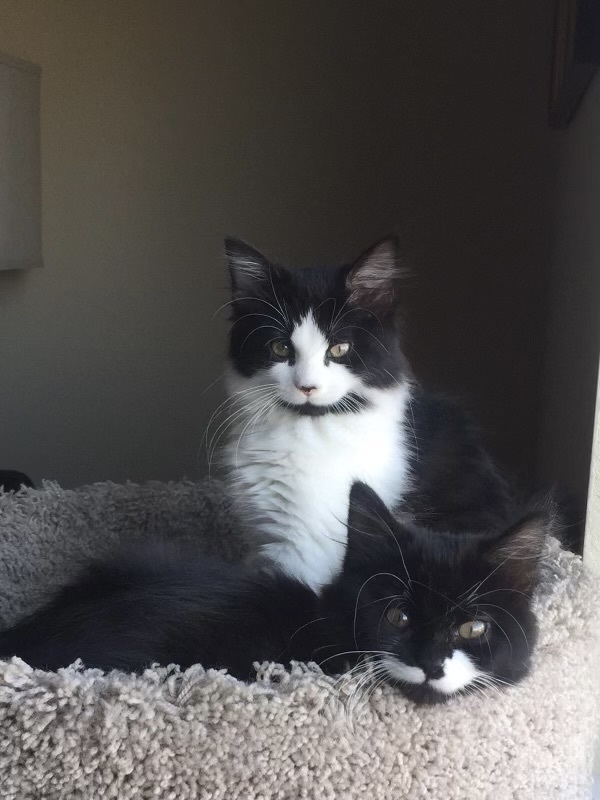 Muffin and Izzy were litter mates and adopted from the Longmont Humane Society in October 2021. They get along with each other beautifully and are a treat to have around.