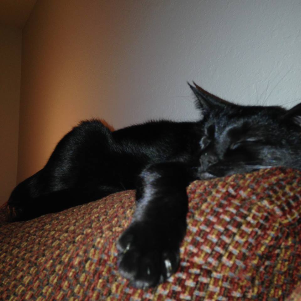 I adopted Evey in May of 2014 at an adoption event at Petsmart. I am told that as a kitten some boys tried to kill her and her litter mates but they were rescued. She then spent the next 2 years waiting to find her forever home. She settled in nicely and now enjoys lounging near the window, chasing the dot and running through her tunnel. This spoiled diva will let you know when she is not happy or when it is time to get out of bed. I absolutely love my fur baby and she has found her forever home. She would love for you to vote for her!