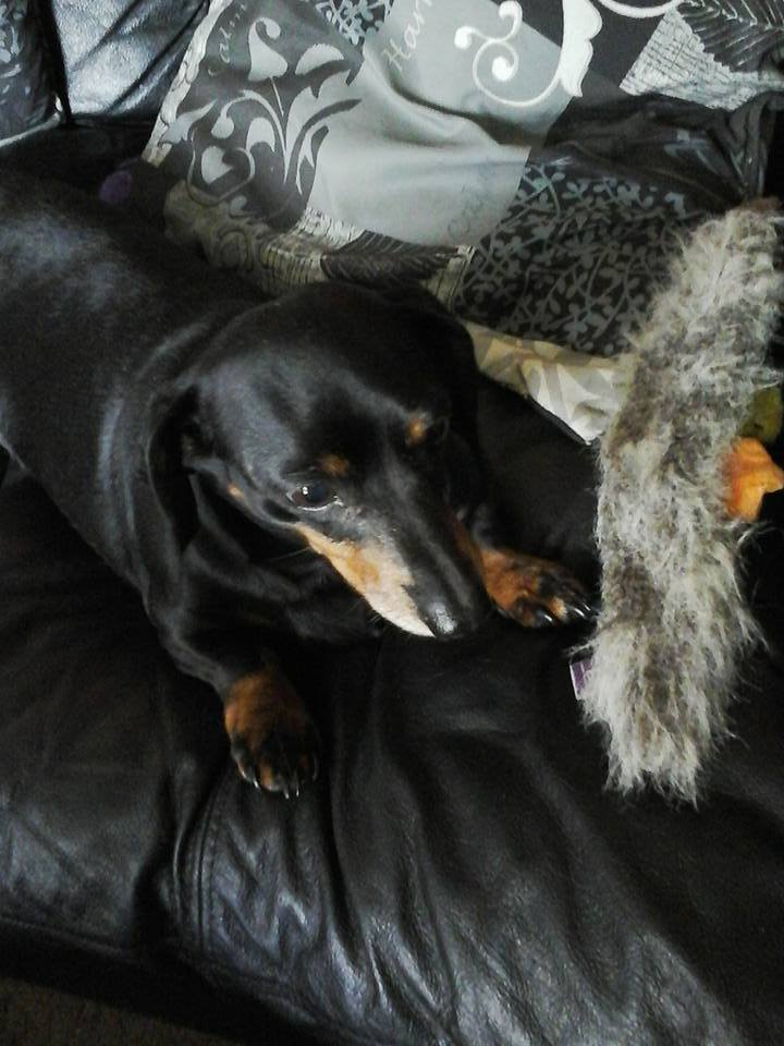 we adopted Mandy to give Cody a friend. we don't know how but Mandy had back problems we took her to the vet and she had to get stitches in her back and once the vet checked her he realized she was blind in her left eye after surgery for her back we took her back home where she rested for a few days than after a week or so she started to play with her siblings and after recovery she was running around everywhere. we are so glad we made the choice to adopt her. she is so sweet and would always follow my husband around so we call her his little shadow.