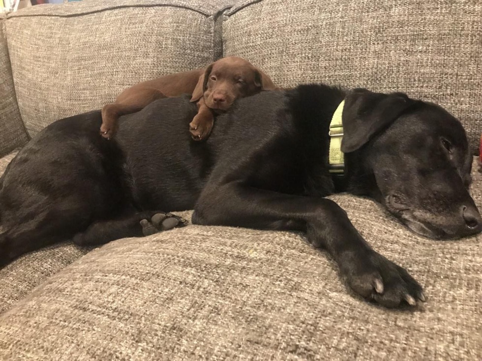 We adopted Walker through Love of Labs in 2015 because his previous owner was allergic. We won the lottery in Walker. He is faithful & Devoted he is a now a therapy dog with Love on a Leash. He was by my side after I was in a serious car accident and in a wheelchair for the whole summer. Then in 2019 we adopted Faith from Love of Labs and she also adores her big brother Walker. Both dogs love playing soccer in our backyard & love walks. We extremely happy with loving labs and grateful for LION rescuing our pups and countless fur babies.