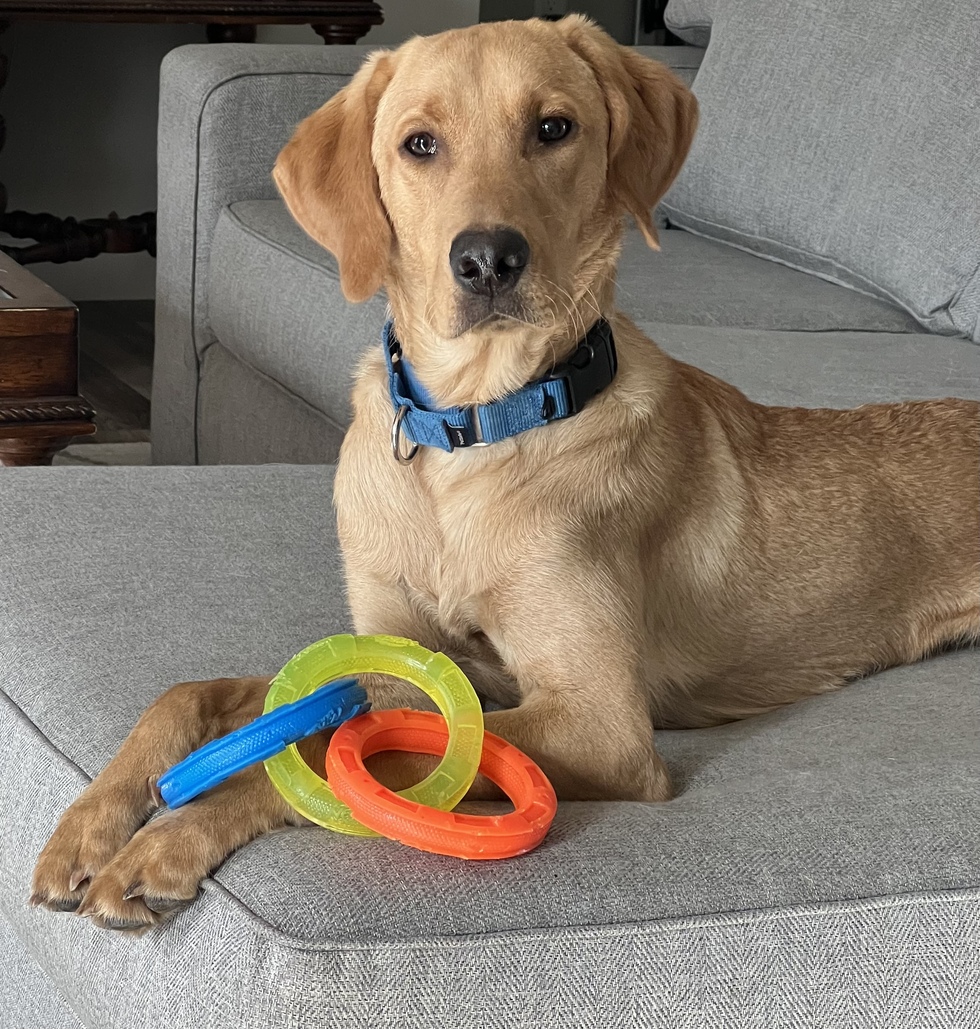 Drake is a LOLIN pup born May of 2022 and we adopted him in December of 2022. He loves to play fetch with tennis balls more than anything! He gives plenty of doggie kisses and snuggles on the couch. His goofy and loving personality fits our family perfectly.