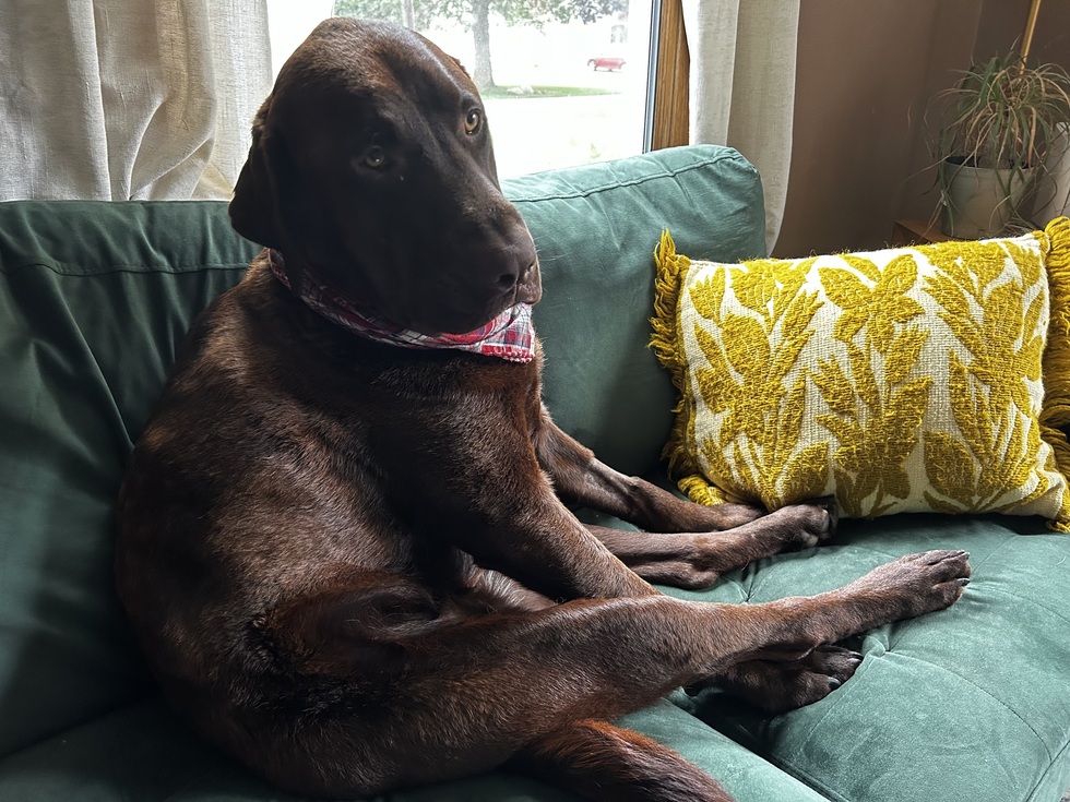 Duke is our foster (soon to be adoptee!) and he’s the epitome of a gentle giant. He loves playing with our other chocolate lab and chasing butterflies in our backyard. Duke loves snacking on Greek yogurt, peanut butter, and rocks. Yes, rocks. Good thing he’s pretty right?