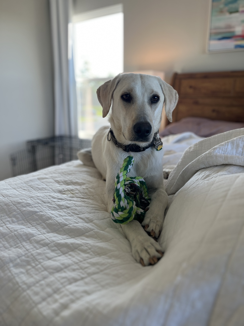 Benson was adopted in July 2023 after a bit of a tough start to life. He is happy to be in his furever home and enjoys chasing tennis balls, long walks around the neighborhood and of course, peanut butter. He rules the house, but that’s just fine as we can’t imagine life without him now.