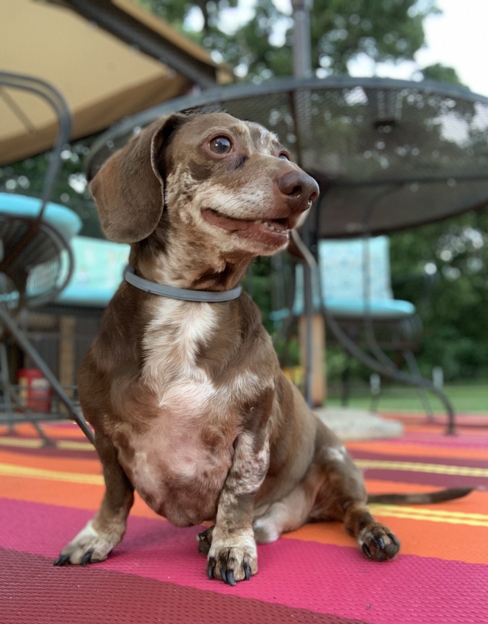 A little about me...Shiner is a Texas native ray of sunshine, always happy and is a IVDD survivor. He never meets at stranger furry or not and he expects love and attention from all children! He has quirky little moments-acting like he needs out because he gets a treat for a good job, barks in protest when he hasn’t received enough treats, and bounces and barks when he wants you to sit beside him on the sofa. Shiner has definitely started an addiction at our house. He is our first dachshund and we’ve added 3 more to our pack all of which are rescues. This boy is one of a kind.