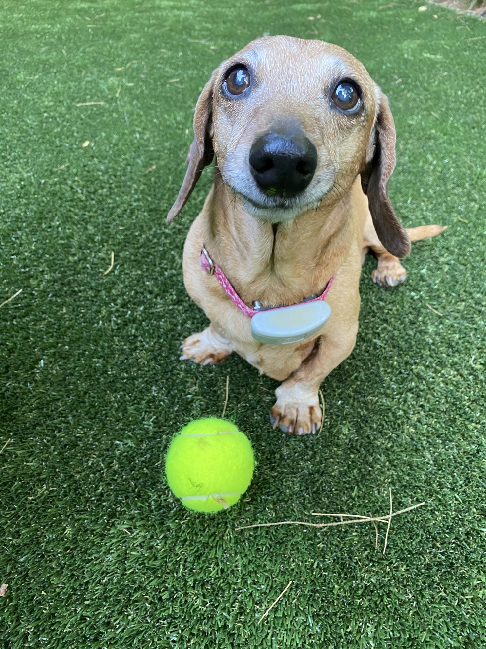 A little about me...Noodles may be a middle aged lady, but she still knows how to have a ball! Her day begins by burrowing out of her human’s bed. She then promptly begins barking at the world. It is quite possible she was raised by a rooster. Next, she eats her breakfast and then it’s off to pee. Noodles knows outside time is ball time. As you can see from her smirk, she knows she has her humans right where she wants them. She is one tough little dog!