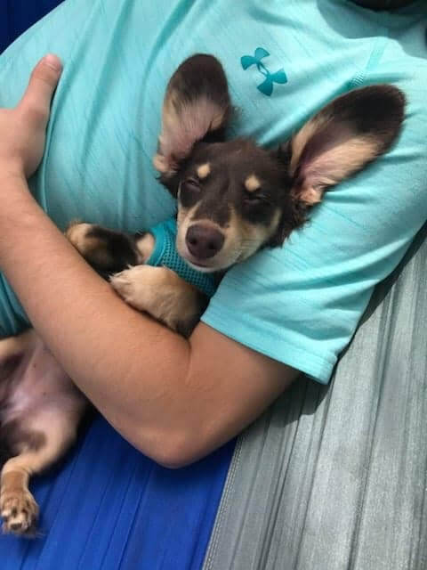 A little about me...Fluff is an adorable long haired chocolate who came to live in a previously cat only home! Kyle, their college son, kept bringing her to visit til she came to stay!! She is now Queen of the house!! Super spoiled and super spunky!! They also have now become a 2 doxie home.... living semi-peacefully with the cats!!