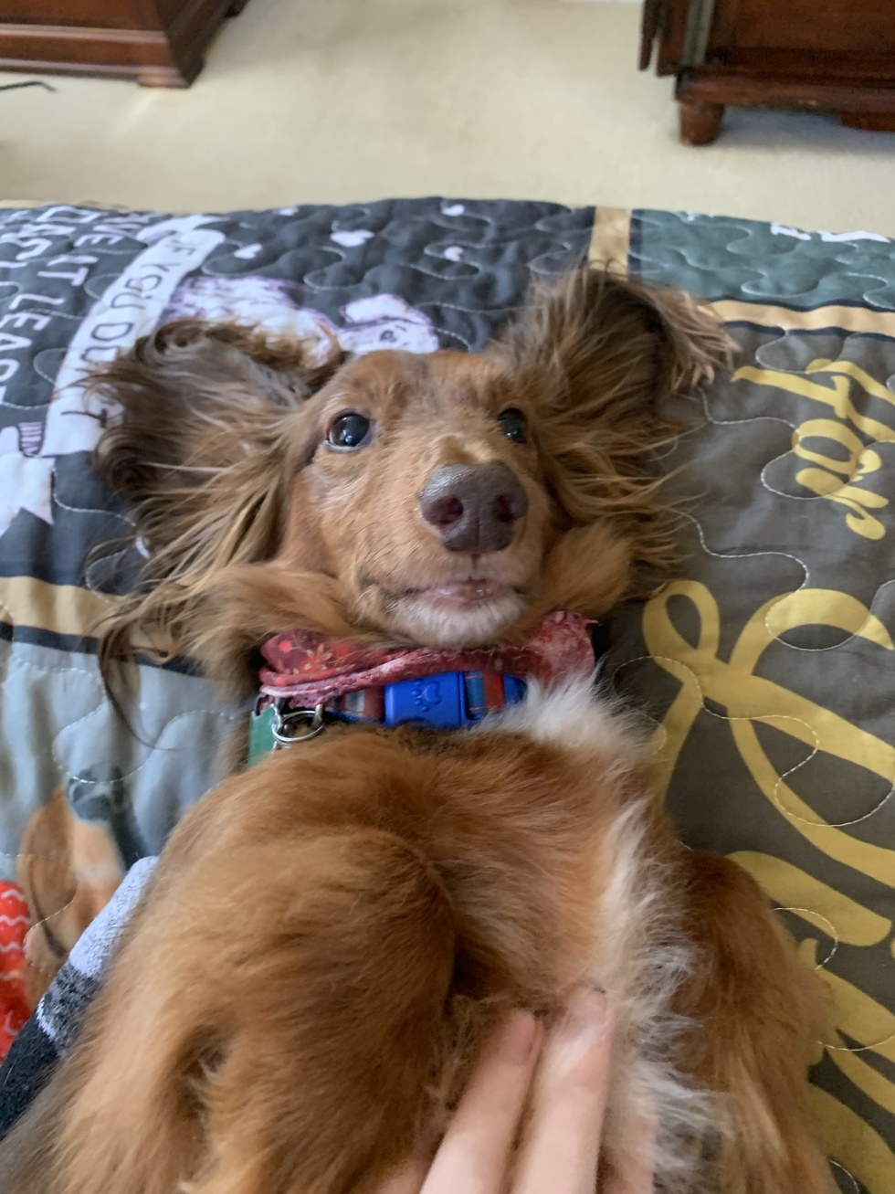 A little about me...Bernard is the youngest (and brattiest) of 3 dachshunds in my home. After my mother passed away in 2010, my daughter and I went to the local pet store to look at the dogs and cheer ourselves up. There Bernard was... we had to rescue him and take him home! He is named after my mother, whose middle name was Bernard. Even though he’s the youngest and smallest, he still fights to be the alpha of our pack. We always say, “it’s Bernard’s world... we’re just living in it!”