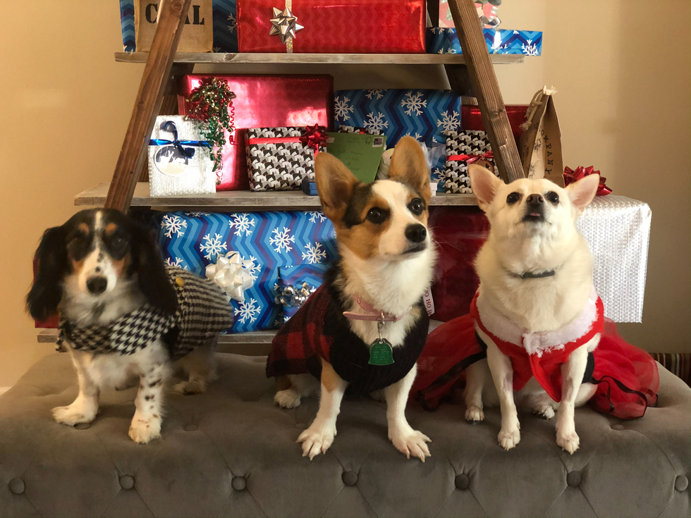 A little about me...Missy (Dachshund) is a alumni of LRDR. Her friend (Sara - Corgi), and sister Hattan (Chihuahua) get dressed for Christmas and have the family photo.