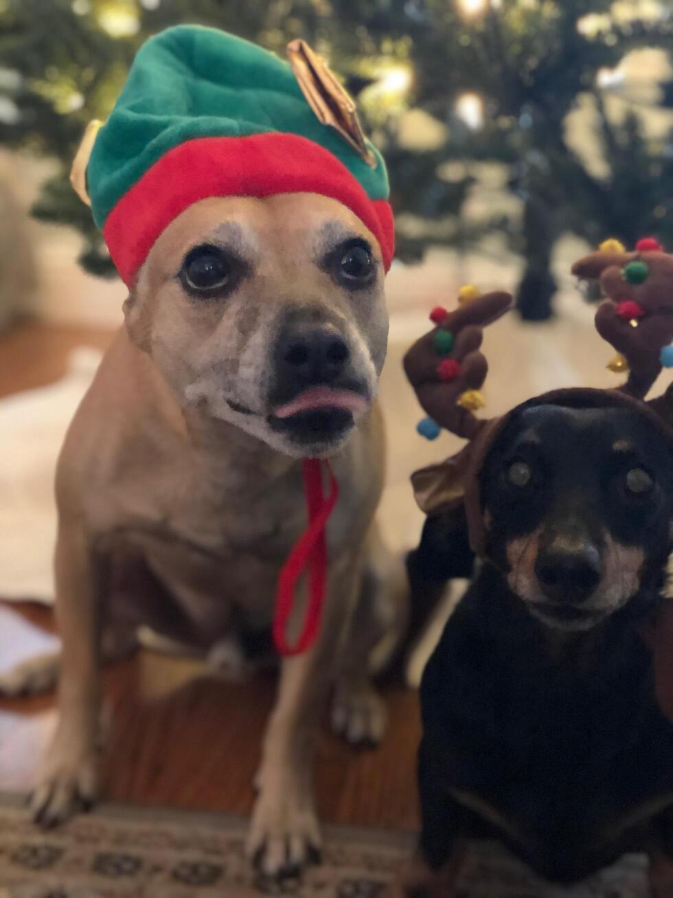 This is the Christmas Picture of our family dogs - Max is always with an attitude and Roxy, well shes Roxy