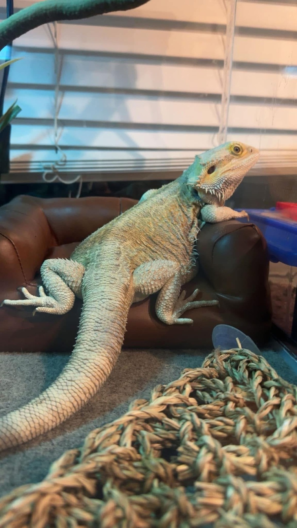 About the petLavender was surrender to an exotic animal clinic I was shadowing at over the summer in 2023, and I decided to keep her as I had just lost my bearded dragon, Cupid, of 12 years. However, I completely understand why Lavender was surrendered as she is not very nice🤣. She enjoys eating, trying to bite my fingers, and running around in the grass or in the house. Her FAVORITE thing in the world is her brown leather chair; she sleeps in it every single night despite having a cave, a basking rock, a hammock, a bridge, and wood in her terrarium. She is named after Lavender Brown from Harry Potter.