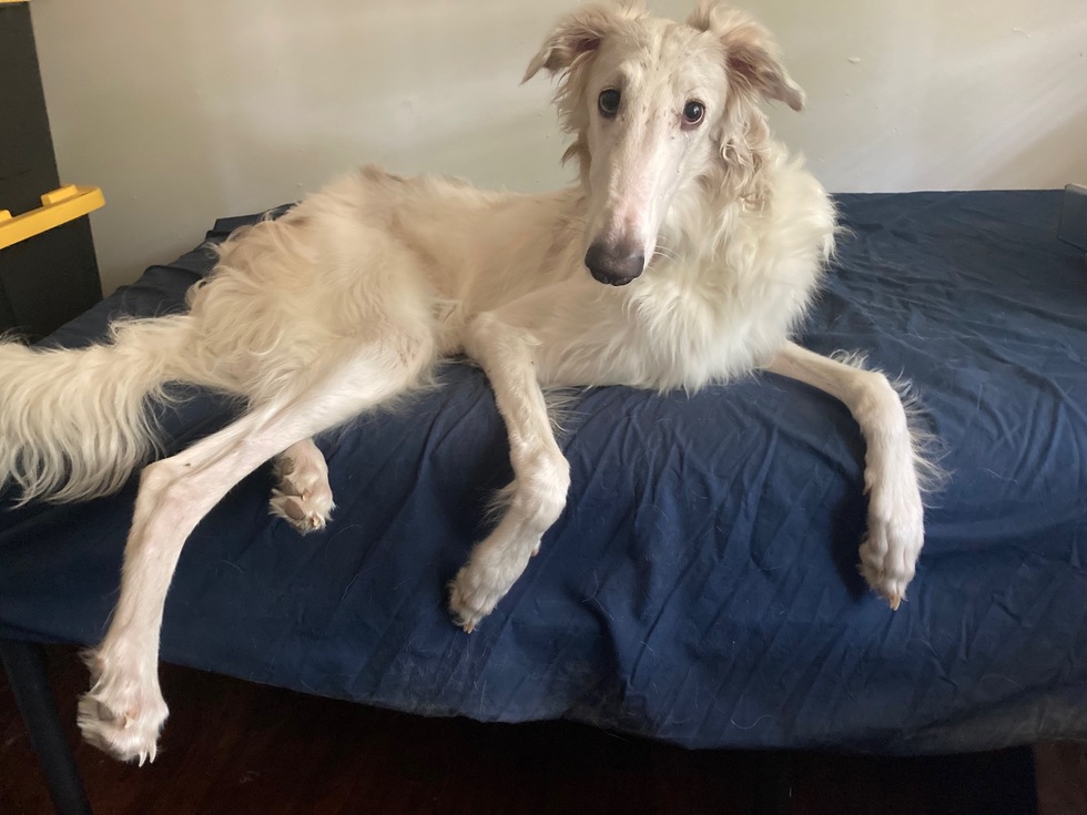 About the petVinny is almost a year old! He was 1 of 4 borzoi pups this last spring who needed a home. Vinny's siblings found homes around the country, and Vinny ended up with me. He loves everybody and is a great dog. If you see him bouncing around the vet school, please come say hello.