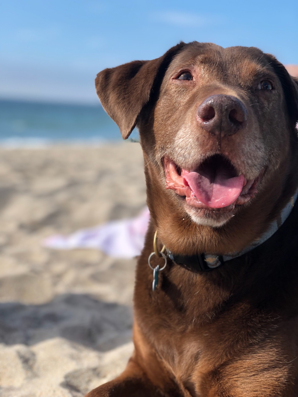 Charlie was adopted from Lucky Lab Rescue and Adoption when he was 1 1/2 years old. He was terrified of people. He has overcome many of his fears, but still is reserved around strangers. He loves his vacations at the beach.